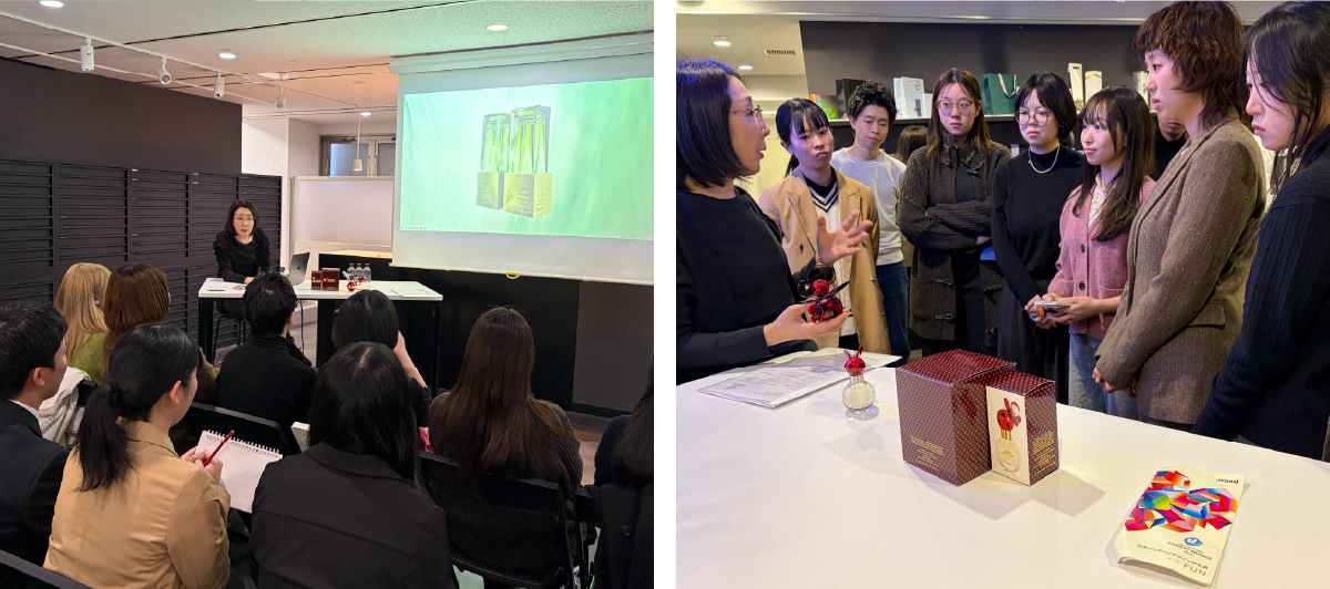 2025年11月27日(木)、28日(金) 第四回となる学生パッケージデザインアワード【日本パッケージデザイン学生賞2025】を受賞した学生を対象に第四回企業研修を関東で実施しました。 2日目は資生堂クリエイティブ株式会社様、五條製紙 PAPER GALLERY 東京様 にて、ポーラ株式会社様、SAYURI STUDIO, INC様にご協力いただきました。